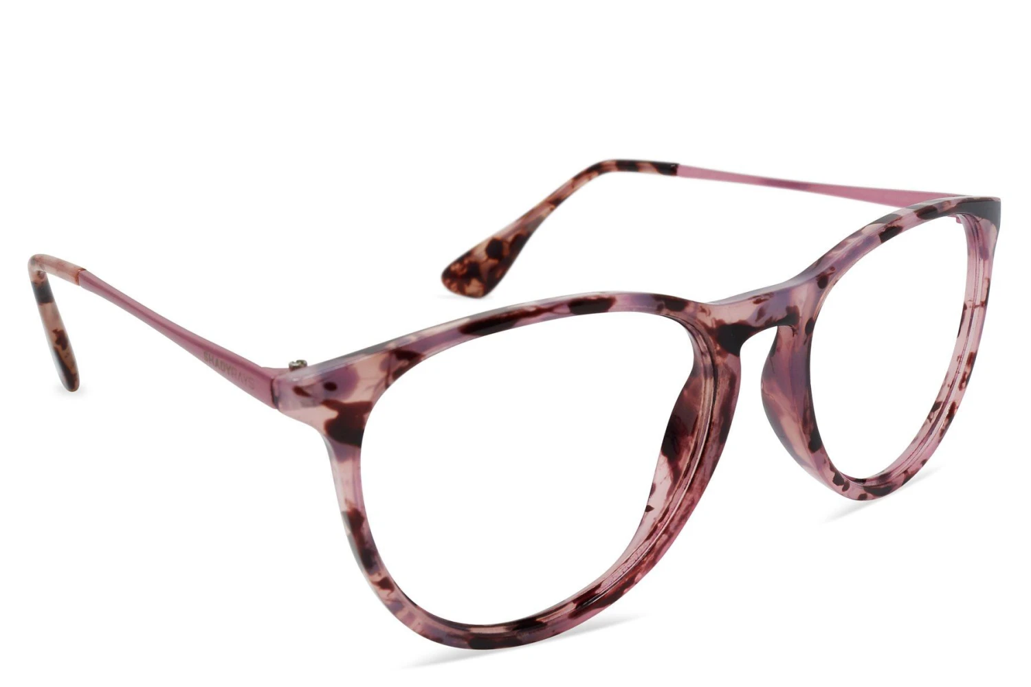 Brushed pink temples and pink tortoise women’s round frame, complete with prescription lenses custom-made for you in our US-based optical lab. Includes signature hard case.