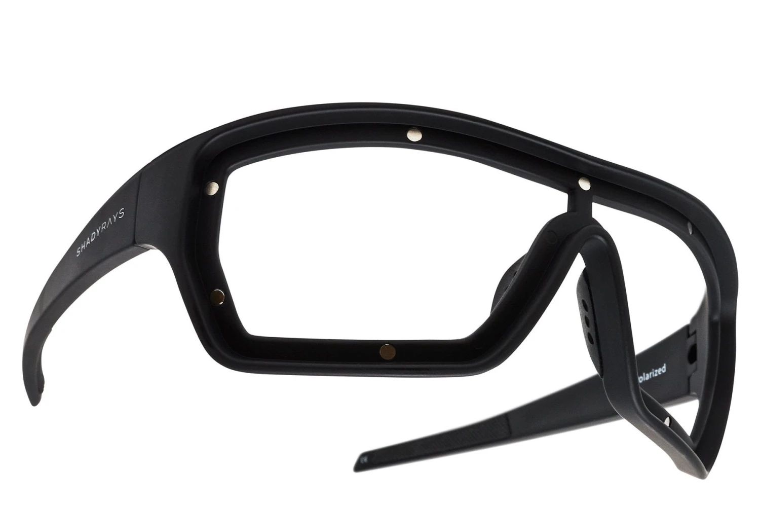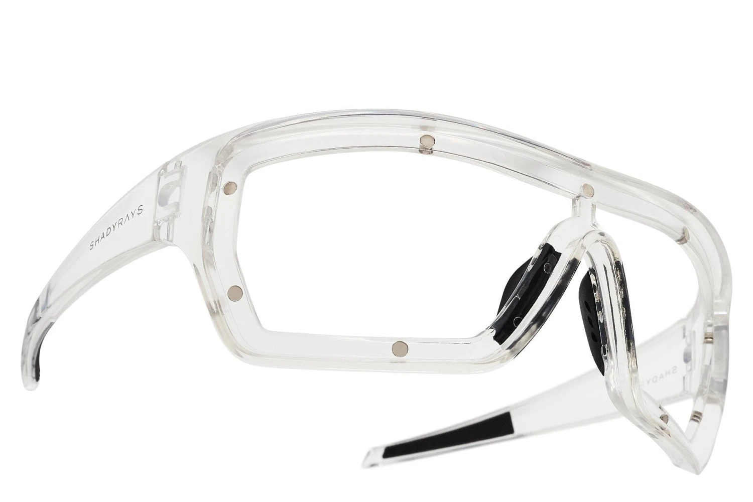 - Features snap hinges, no-slip grip, comfort padded nose pieces, and metal inset Shady Rays logo