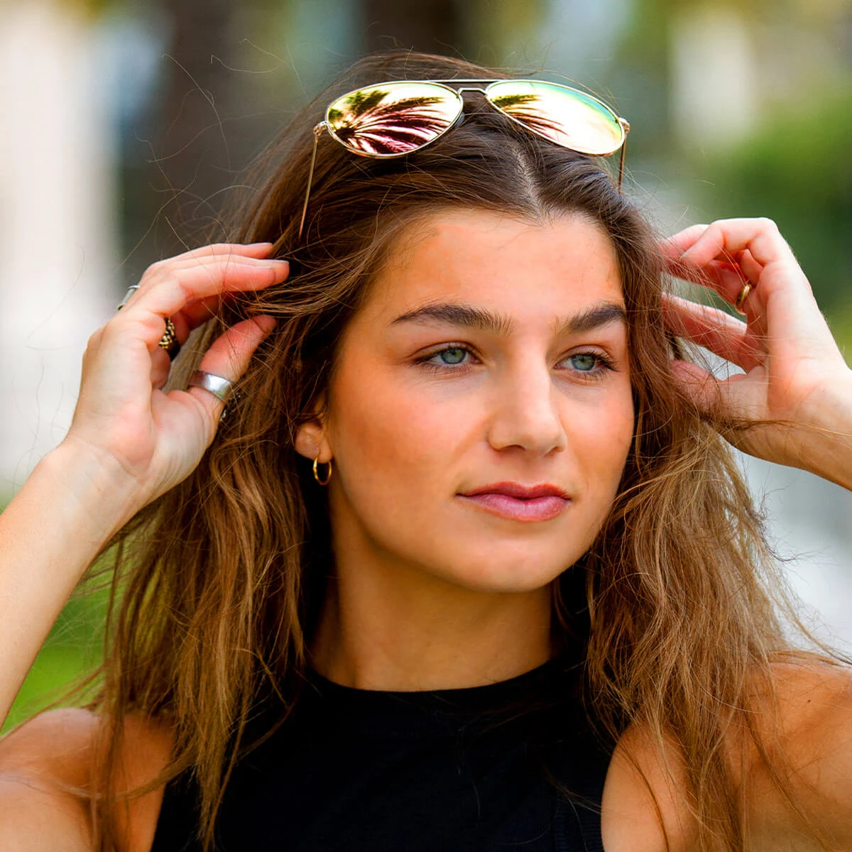- Ultra Premium Polarized Rose Gold Mirrored Lenses with grey tint and 100% UV protection – made to be shatter-resistant, scratch-resistant and ultra lightweight